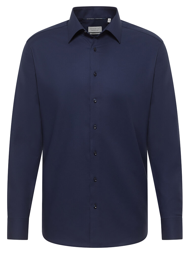 La chemise d'affaires moderne de la collection ETERNA Modern Fit représente l'homme confiant et à la mode d'aujourd'hui. Une coupe contemporaine combinée à des détails de produits de qualité promet un haut niveau de confort, faisant de cette chemise un maître de l'arrangement. La chemise unie pour homme de la couleur marine ne doit manquer dans aucune garde-robe masculine et peut être combiné avec le col classique et distingué Kent pour toute occasion ainsi que dans la vie de tous les jours. Avec une cravate assortie et un nœud large de cravate, on obtient cette chemise pour ETERNA Modern Fit à son meillieur.