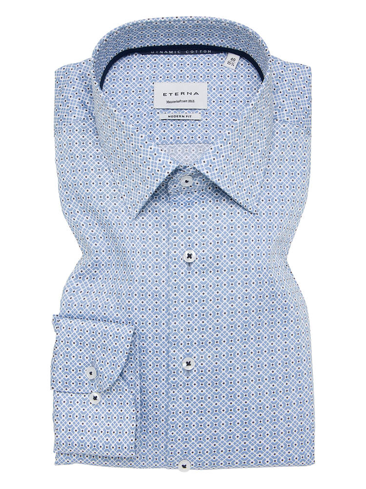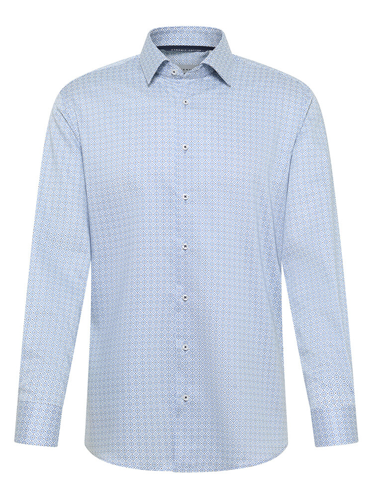 La chemise d'affaires moderne de la collection ETERNA Modern Fit représente l'homme confiant et à la mode d'aujourd'hui. Une coupe contemporaine combinée à des détails de produits de qualité promet un haut niveau de confort, faisant de cette chemise un maître de l'arrangement. La chemise à motifs pour homme de la couleur bleu clair ne doit manquer dans aucune garde-robe masculine et peut être combiné avec le col classique et distingué Kent pour toute occasion ainsi que dans la vie de tous les jours. Avec une cravate assortie et un nœud large de cravate, on obtient cette chemise pour ETERNA Modern Fit à son meillieur.