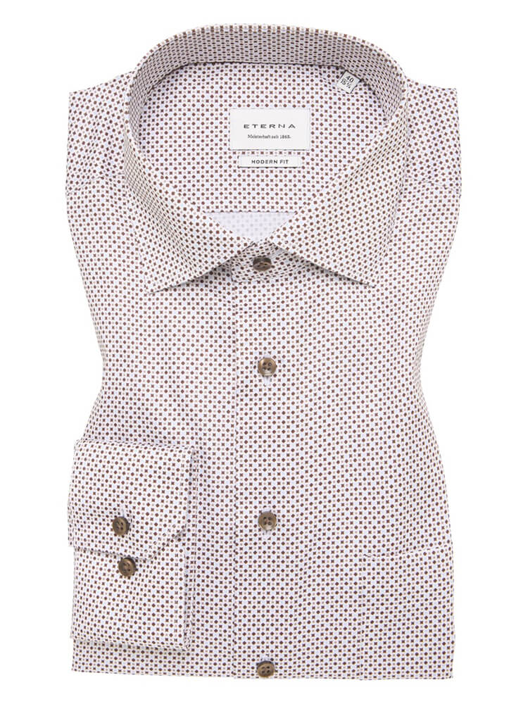 La chemise d'affaires moderne de la collection ETERNA Modern Fit représente l'homme confiant et à la mode d'aujourd'hui. Une coupe contemporaine combinée à des détails de produits de qualité promet un haut niveau de confort, faisant de cette chemise un maître de l'arrangement. La chemise à motifs pour homme de la couleur brune ne doit manquer dans aucune garde-robe masculine et peut être combiné avec le col classique et distingué Kent pour toute occasion ainsi que dans la vie de tous les jours. Avec une cravate assortie et un nœud large de cravate, on obtient cette chemise pour ETERNA Modern Fit à son meillieur.Informations du fabricant :