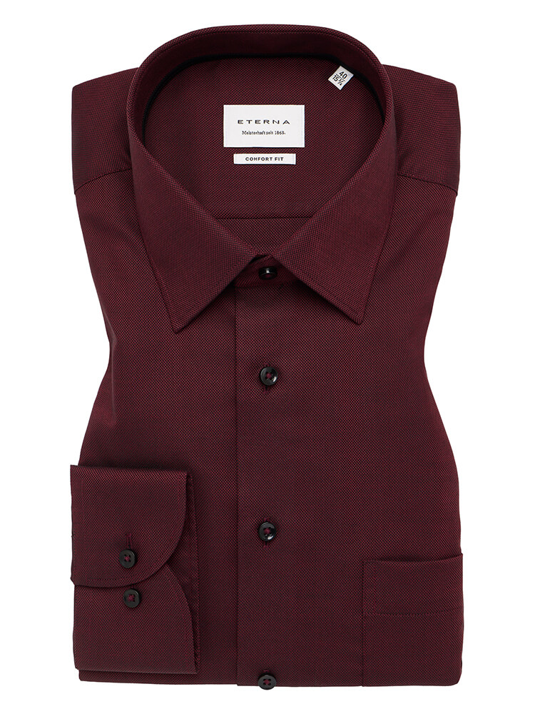 La chemise d'affaires conforte de la collection ETERNA Comfort Fit La collection représente l'homme d'aujourd'hui, sophistiqué et soucieux de la mode. Une coupe classique associée à des détails mode promet un haut niveau de confort et fait de cette chemise un maître de la combinaison. La chemise unie pour homme de la couleur rouge foncé ne doit pas manquer dans la garde-robe de tout homme et peut être associé au col élégant et intemporel Kent pour toute occasion ainsi que dans la vie de tous les jours. Avec une cravate assortie et un nœud large de cravate, on obtient cette chemise pour ETERNA Comfort Fit à son meillieur.Informations du fabricant :