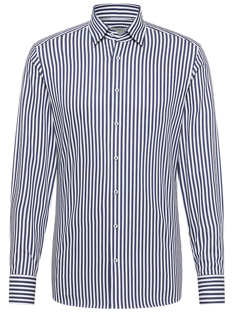 La chemise d'affaires élegante de la collection ETERNA Slim Fit représente l'homme mince et soucieux de la mode d'aujourd'hui. Une coupe moulante associée à des détails mode promettent un haut niveau de confort et font de cette chemise un artiste de la combinaison. La chemise rayée pour homme de la couleur bleu foncé ne doit manquer dans aucune garde-robe masculine et peut être portée avec le col 'élégant et intemporel Boutons sous col pour toute occasion ainsi que dans la vie de tous les jours. C'est avec une cravate étroite et un petit nœud de cravate que cette chemise pour homme ETERNA Slim Fit à son meillieur.Informations du fabricant :