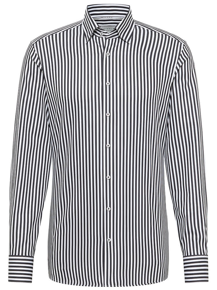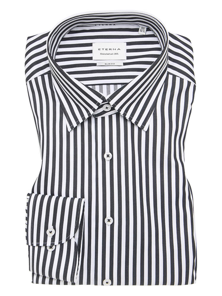 La chemise d'affaires élegante de la collection ETERNA Slim Fit représente l'homme mince et soucieux de la mode d'aujourd'hui. Une coupe moulante associée à des détails mode promettent un haut niveau de confort et font de cette chemise un artiste de la combinaison. La chemise rayée pour homme de la couleur noire ne doit manquer dans aucune garde-robe masculine et peut être portée avec le col 'élégant et intemporel Boutons sous col pour toute occasion ainsi que dans la vie de tous les jours. C'est avec une cravate étroite et un petit nœud de cravate que cette chemise pour homme ETERNA Slim Fit à son meillieur.Informations du fabricant :