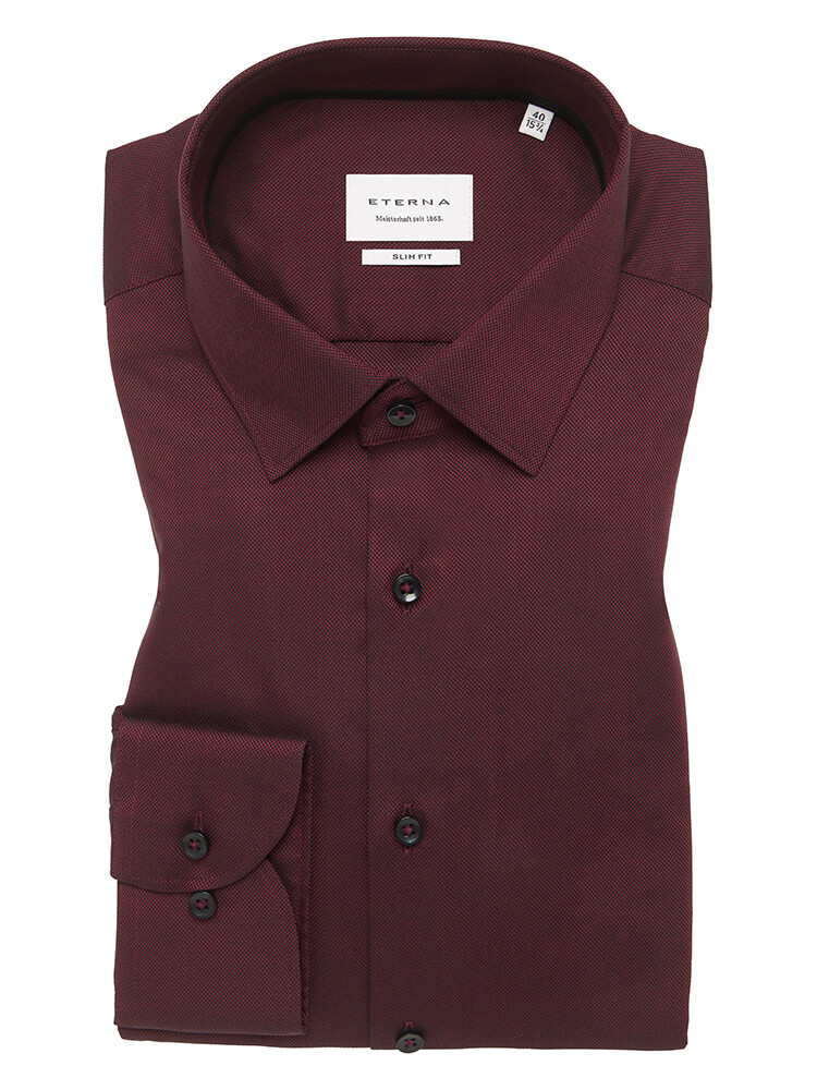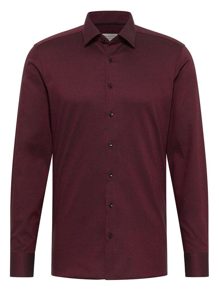 La chemise d'affaires élegante de la collection ETERNA Slim Fit représente l'homme mince et soucieux de la mode d'aujourd'hui. Une coupe moulante associée à des détails mode promettent un haut niveau de confort et font de cette chemise un artiste de la combinaison. La chemise unie pour homme de la couleur rouge foncé ne doit manquer dans aucune garde-robe masculine et peut être portée avec le col 'élégant et intemporel Kent pour toute occasion ainsi que dans la vie de tous les jours. C'est avec une cravate étroite et un petit nœud de cravate que cette chemise pour homme ETERNA Slim Fit à son meillieur.