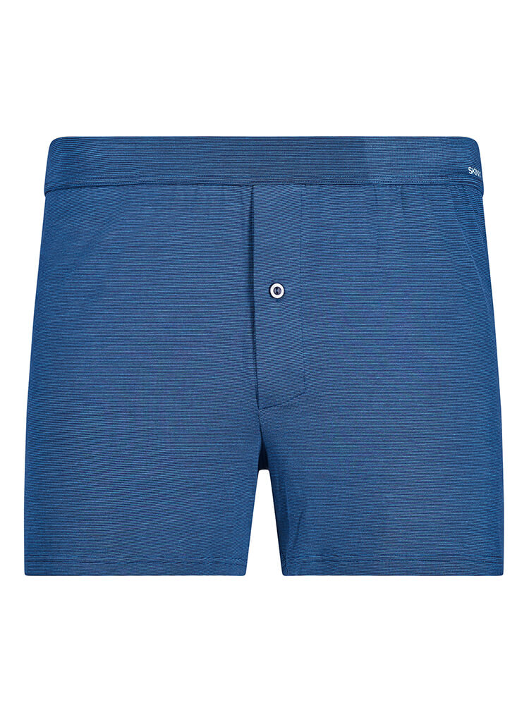 Le boxer SKINY Cooling Deluxe bleu marine, orné de fines rayures, offre une agréable sensation...plus