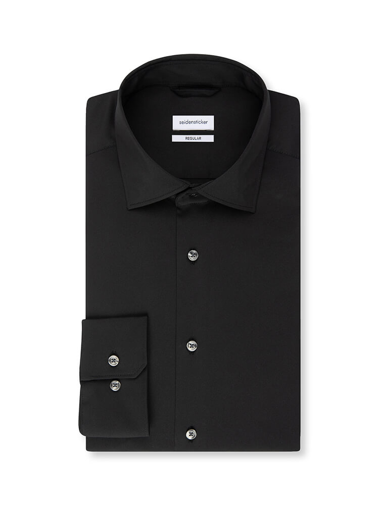 La chemise d'affaires moderne de la collection SEIDENSTICKER REGULAR représente l'homme confiant et à la mode d'aujourd'hui. Une coupe contemporaine combinée à des détails de produits de qualité promet un haut niveau de confort, faisant de cette chemise un maître de l'arrangement. La chemise unie pour homme de la couleur noire ne doit manquer dans aucune garde-robe masculine et peut être combiné avec le col classique et distingué Nouveau Kent pour toute occasion ainsi que dans la vie de tous les jours. Avec une cravate assortie et un nœud large de cravate, on obtient cette chemise pour SEIDENSTICKER REGULAR à son meillieur.