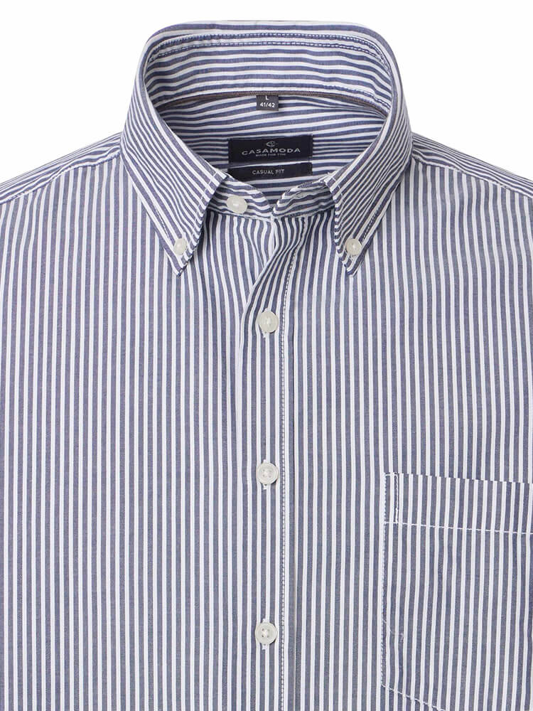 La chemise décontractée moderne de la collection CASAMODA Modern Fit représente l'homme confiant et à la mode d'aujourd'hui. Une coupe contemporaine combinée à des détails de produits de qualité promet un haut niveau de confort, faisant de cette chemise un maître de l'arrangement. La chemise rayée pour homme de la couleur bleu foncé ne doit manquer dans aucune garde-robe masculine et peut être combiné avec le col classique et distingué Pointes boutonnées pour toute occasion ainsi que dans la vie de tous les jours. Avec une cravate assortie et un nœud large de cravate, on obtient cette chemise pour CASAMODA Modern Fit à son meillieur.Informations du fabricant :