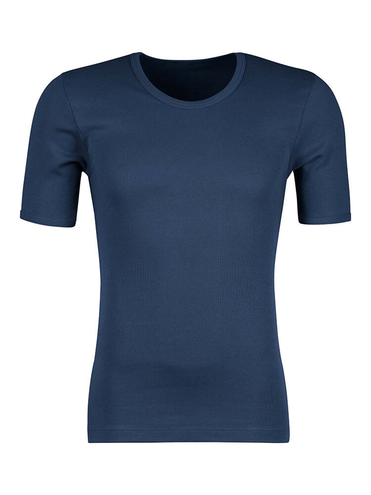 Le t-shirt HUBER en maille côtelée fine bleu marine offre une douceur et un confort exceptionnels grâce à sa maille côtelée fine de haute qualité, 100 % coton. Avec son col rond, ses manches mi-longues et sa coupe classique confortable, ce t-shirt est idéal comme sous-vêtement ou haut décontracté. Il est lavable en machine et facile à repasser.
