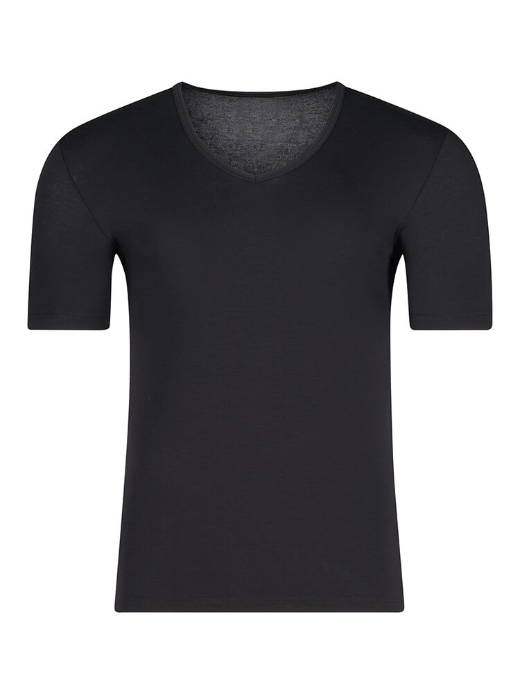 Le t-shirt HUBER Hautnah Cool Lyocell Selection noir classique offre une sensation de douceur et...plus