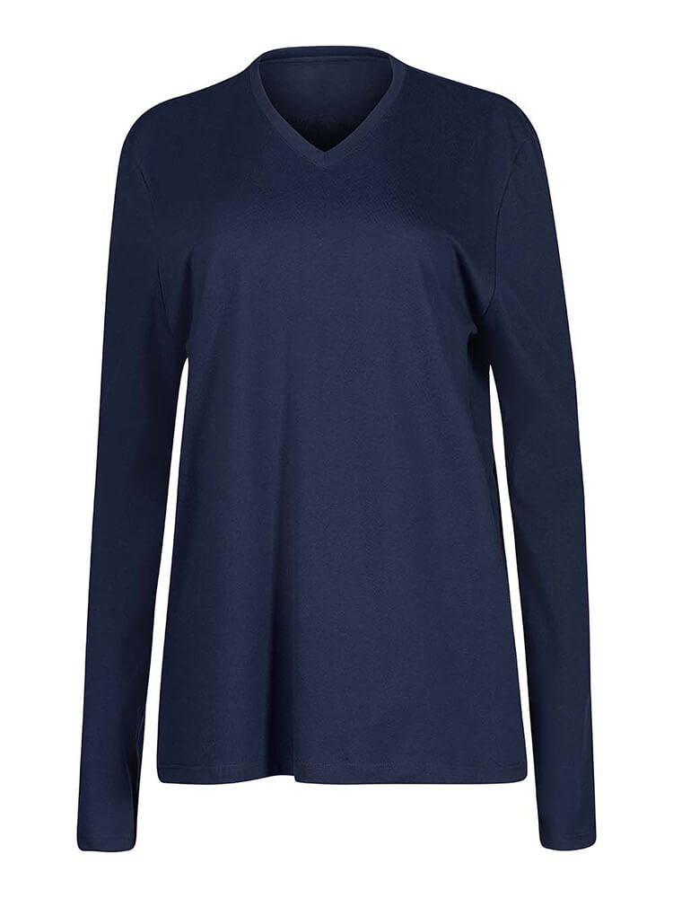 Le t-shirt HUBER Hautnah Night Basic Selection bleu foncé séduit par sa coupe décontractée et son confort exceptionnel. Son jersey doux, 100 % coton, offre une sensation respirante et agréable sur la peau. Avec son col en V, ses manches longues et sa coupe classique, ce t-shirt est idéal comme vêtement de nuit ou de détente. Lavable en machine et facile à repasser.